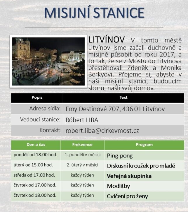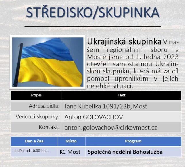 Srdečně Vás zveme k návštěvě našich veřejných aktivit v našich Křesťanských centrech, misijních stanicích, střediscích či skupinkách.